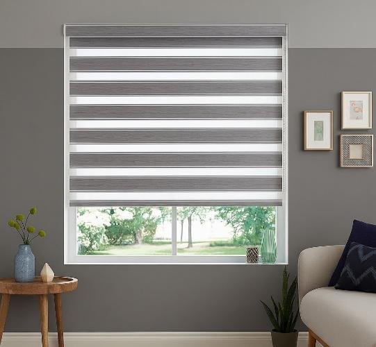 We offer stylish zebra blinds in Dubai with alternating strips of sheer and opaque fabric. These blinds available in a range of colours and fabrics, making them a good fit for any decor.
