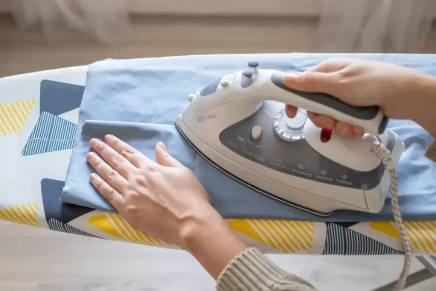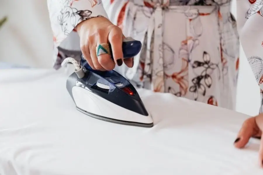 Work in small sections and move the iron in strokes, gently. Don’t leave the iron on one area for more than a few seconds, as it can cause scorching.